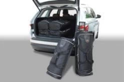 Inpakken ging nog nooit zo handig en snel, want je weet: past het in de Car-Bags.com™ reistassen set, dan past het vanzelf in je kofferbak. De meeste sets bestaan uit een onderlaag van handige trolleytassen met wieltjes en telescoopgreep en een bovenlaag van bijpassende reistassen. Een Car-Bags reistassenset is exact op maat gemaakt per automodel. De set wordt dus niet samengesteld uit een vast assortiment standaard tassen, maar de maten van de trolleytassen en reistassen zijn precies aangepast aan de kofferruimte. Daardoor wordt deze optimaal benut in breedte, lengte en hoogte. Car-Bags.com reistassen zijn meestal 30-35 cm breed, zodat opgevouwen kleding er goed in past. Onze tassen zijn niet te groot, want grote tassen zijn zwaar en moeilijk te hanteren. Bovendien raakt de inhoud bij grote tassen makkelijker door elkaar.